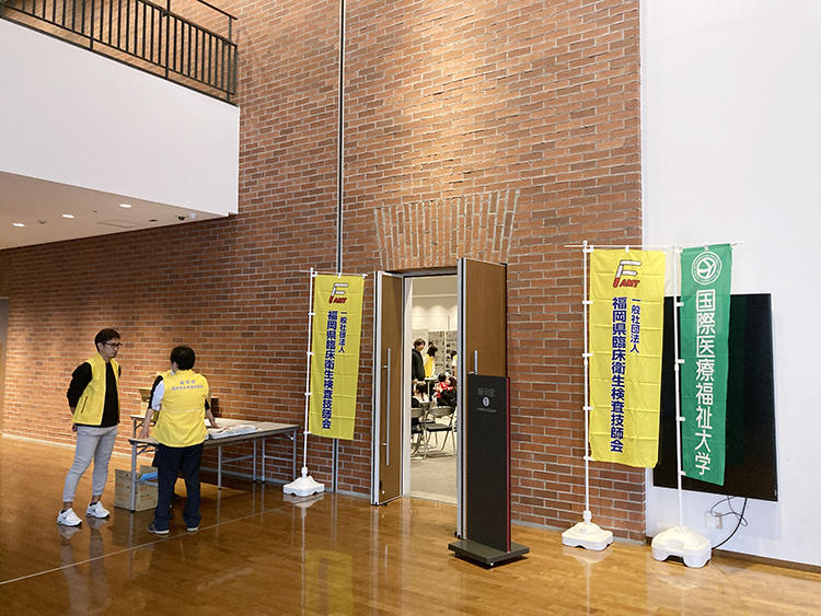 各種臨床検査の担当者がそれぞれの検査を紹介・体験できるブースを設け、本学と久留米大学からも養成校紹介ブースを出展しました。